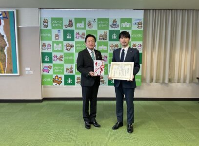 たち建設は、1月に企業版ふるさと納税として栗東市に寄付をさせていただいたことに際して感謝状をいただきました。