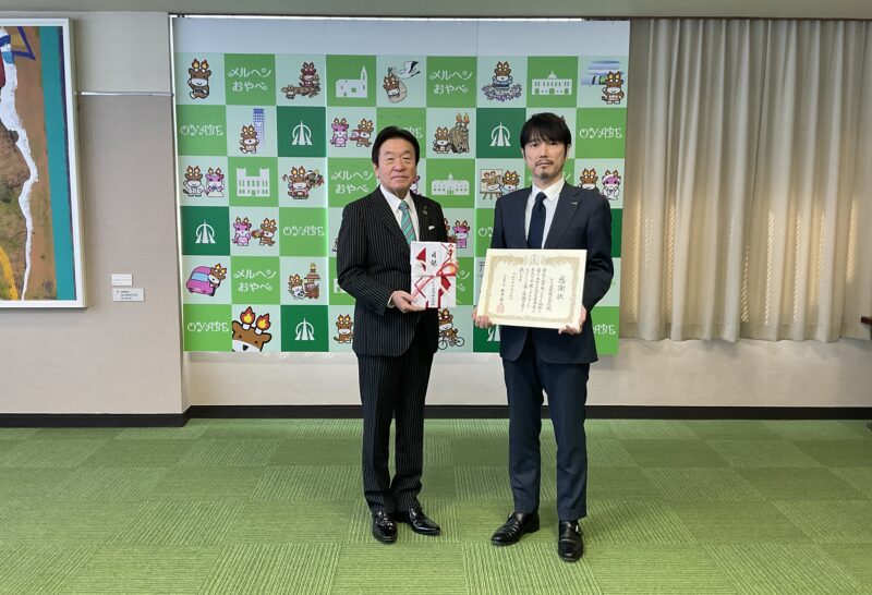 昨年、たち建設株式会社が栗東市へさせていただいた寄附が功績として認められ、