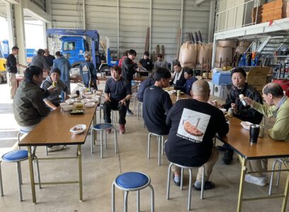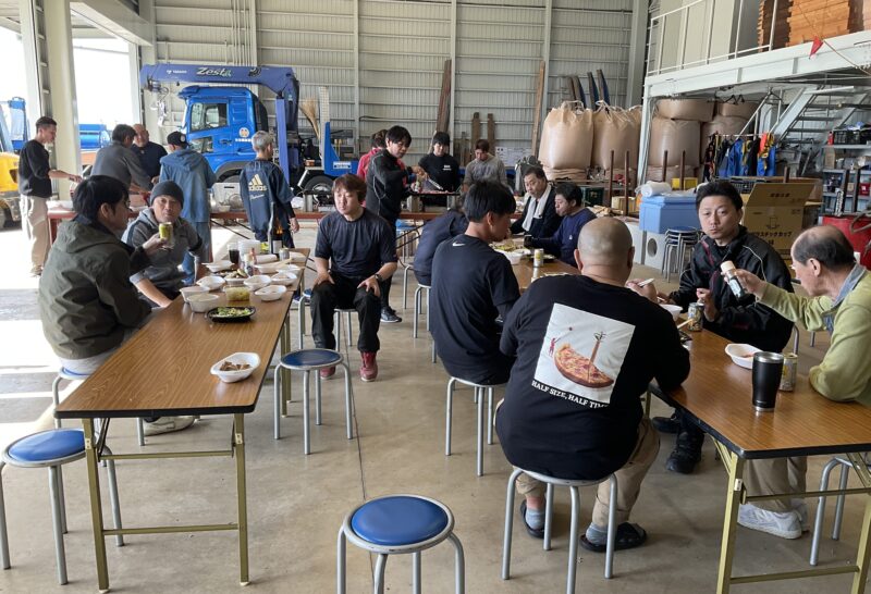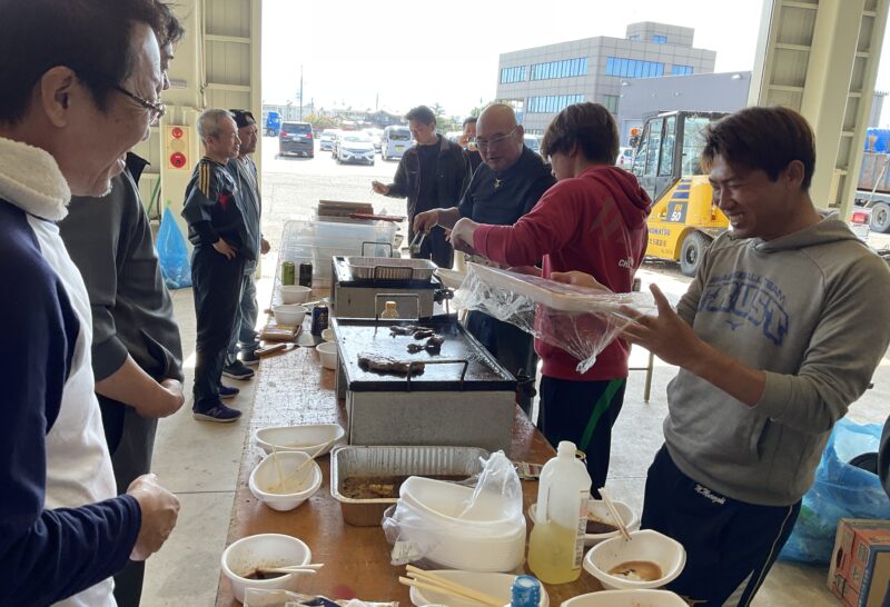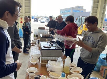 大会終了後は本社倉庫内にて牡蠣とともにバーベキューを行い、鋭気を養いました。