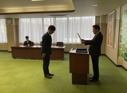 2月15日午後に射水市役所にて、企業版ふるさと納税感謝状贈呈式が執り行われました。