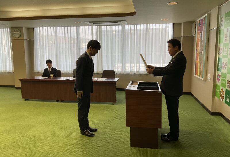 4月14日(月)滋賀県栗東市役所にて、紺綬褒章の伝達式が執り行われました。