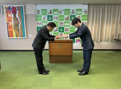 2月29日(木)滋賀県栗東市役所にて、企業版ふるさと納税の寄贈式が執り行われました。