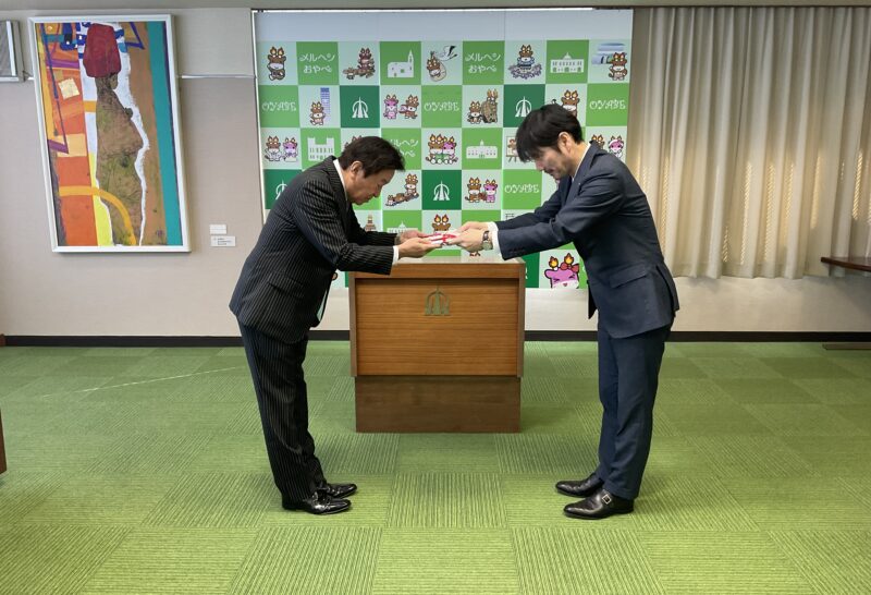 たち建設株式会社は、4年連続で小矢部市に寄附金を贈呈したことに際し、