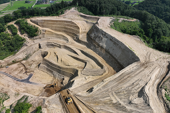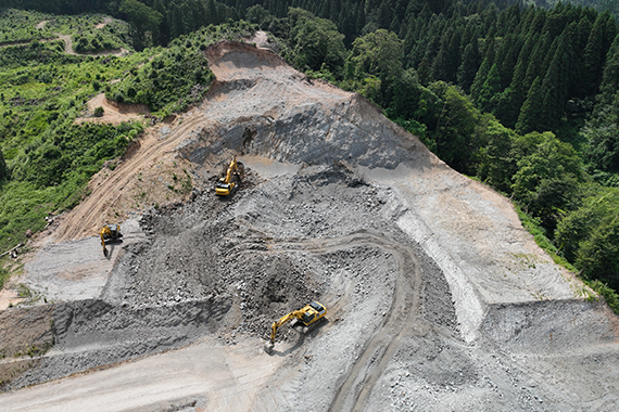 土木・造成工事に不可欠な砕石、山砂、山土砂の採取、 販売を一貫して手掛けています。砺波市、小矢部市の土砂採取場に加え、陸砂利などの土石採取も行っており、年間を通して工事材料の安定供給をお約束します。